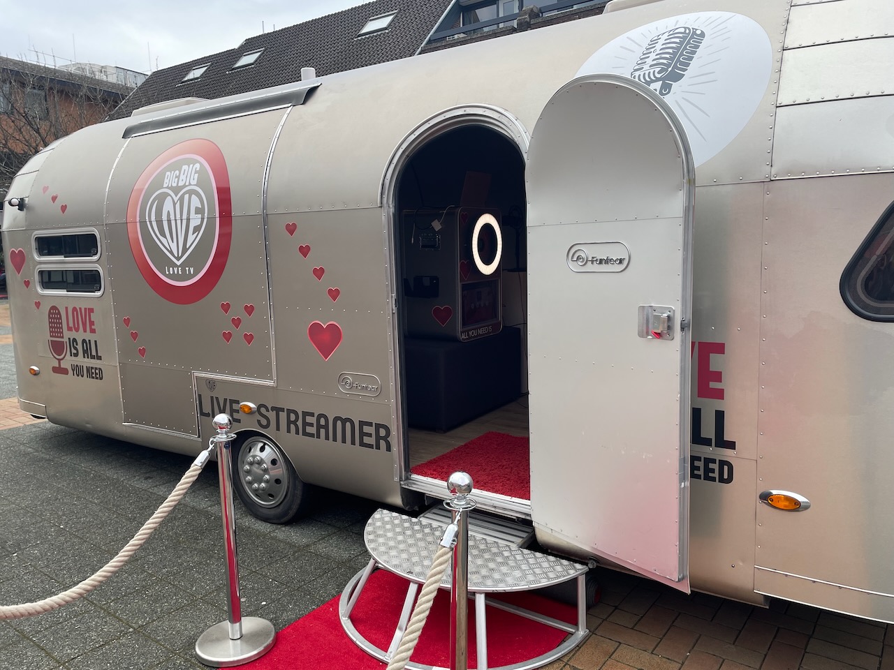 Wie kent hem nou niet? De enige echte All You Need Is Love Caravan. We hebben er verschillende gemaakt in onze carrière en rijden er al vanaf 2006 mee rond voor het beroemde TV Programma van Robert Ten Brink.. Overal zijn we geweest van de AYNIL studio's in Aalsmeer en Amsterdam tot Lutjebroek. Van Salzburg tot Parijs. Van De Efteling tot de Sagrada Familia. Meer dan 150 keer zijn we uitgerukt totdat de reguliere serie in 2021 als studioprogramma stopte. Op TV is er alleen nog een kerstshow terwijl de caravan nog vaak in gebruik is als photobooth.