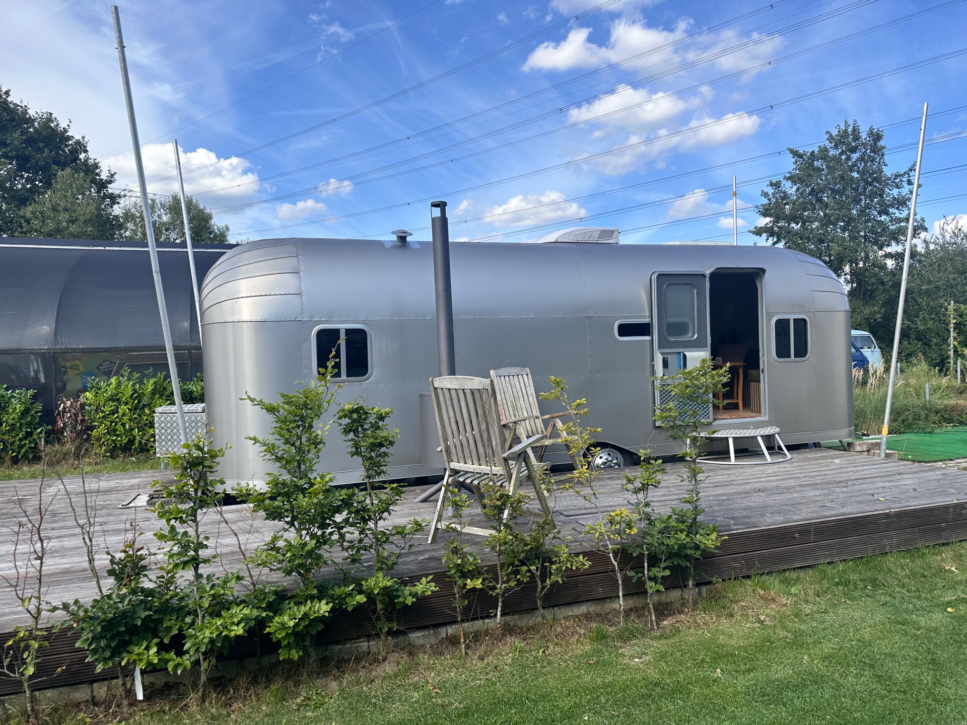 De Angie Lodge is gebouwd in een Funtear Streamcamper van 7.30 meter lang en 2.20 meter breed.