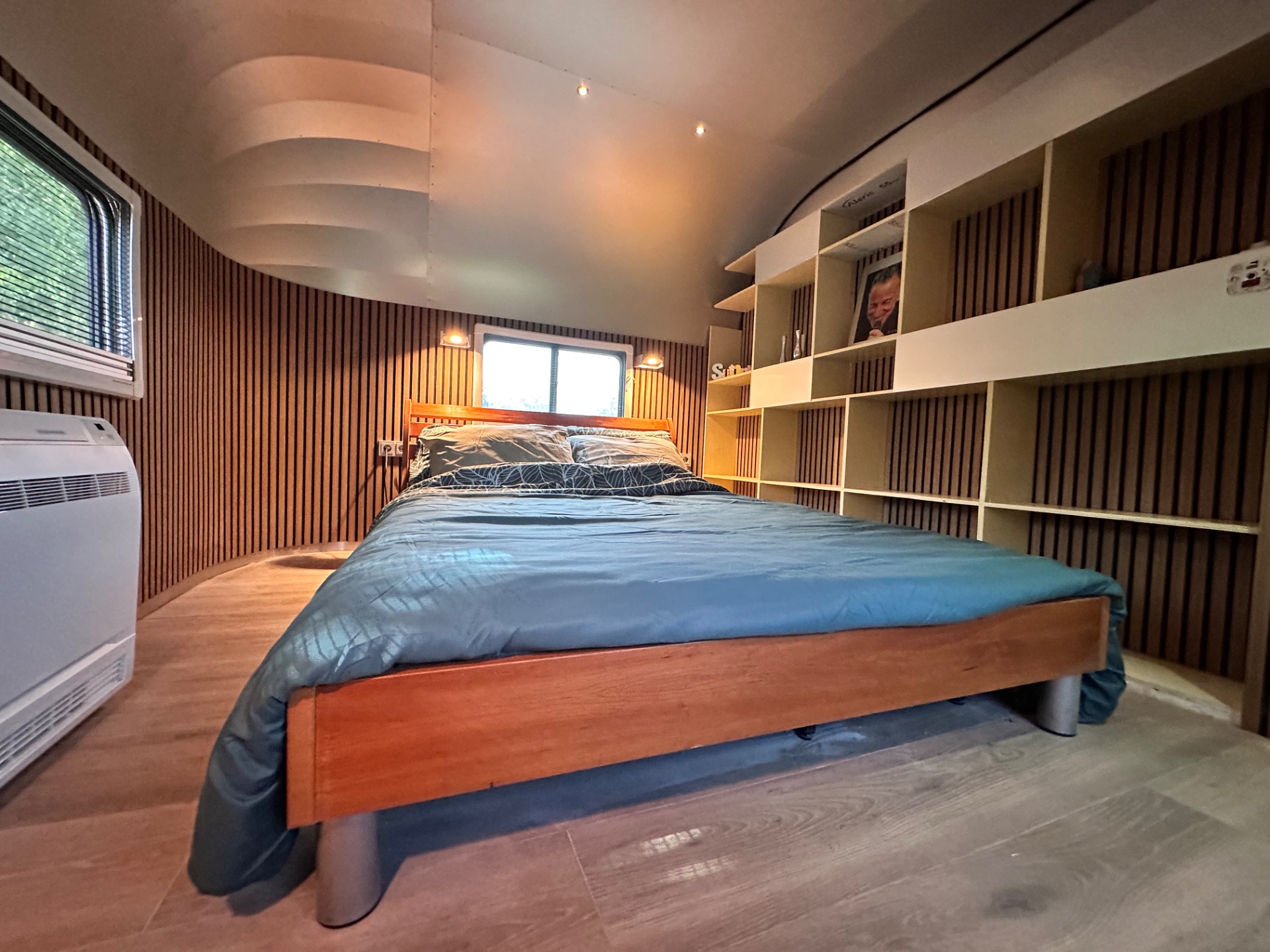 Het interieur ademt de sfeer van de 'Happy Days', geïnspireerd door de jaren '50. De prachtige Amerikaanse keuken, ontworpen naar het model van 'Raymond Loewy', kan deels naar buiten worden geschoven voor een handige buitenkeuken. Deze keuken is uitgerust met een retro koelkast, een Big Green Egg, een inductiekookplaat met twee zones, een retro koffiezetapparaat, een toaster en een blender voor de heerlijkste milkshakes.